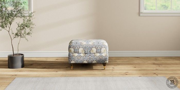 7.2.10 Ashford Storage Footstool Pimpernel by Morris and Co Indigo Blue Castor - Mid | Made Click here to use our website with more accessibility support, for example screen readers