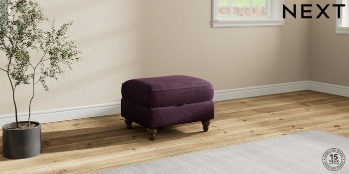 7.2.10 Ashford Storage Footstool Plush Chenille Dark Plum Purple Low Turned - Mid | Made Click here to use our website with more accessibility support, for example screen readers