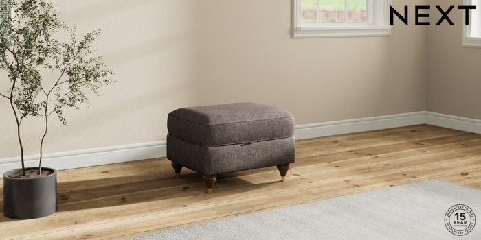 7.2.10 Ashford Storage Footstool Plush Chenille Mink Brown Modern Turned Metal Cap - Mid | Made Click here to use our website with more accessibility support, for example screen readers