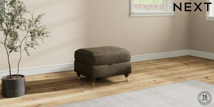 7.2.10 Ashford Storage Footstool Plush Chenille Moss Green Castor - Mid | Made Click here to use our website with more accessibility support, for example screen readers