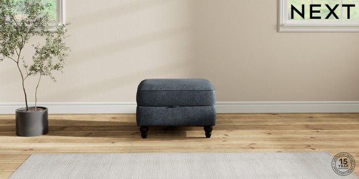 7.2.10 Ashford Storage Footstool Plush Chenille Slate Blue Low Turned - Dark | Made Click here to use our website with more accessibility support, for example screen readers