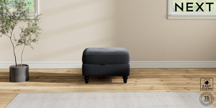 7.2.10 Ashford Storage Footstool Plush Velvet Easy Clean Charcoal Grey Low Turned - Dark | Made Click here to use our website with more accessibility support, for example screen readers