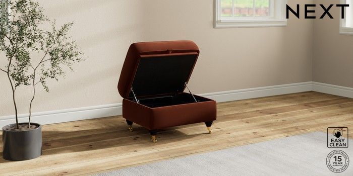 7.2.10 Ashford Storage Footstool Plush Velvet Easy Clean Ginger Orange Castor - Dark | Made Click here to use our website with more accessibility support, for example screen readers