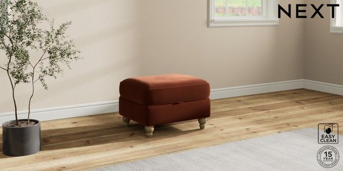 7.2.10 Ashford Storage Footstool Plush Velvet Easy Clean Ginger Orange Low Turned - Light | Made Click here to use our website with more accessibility support, for example screen readers