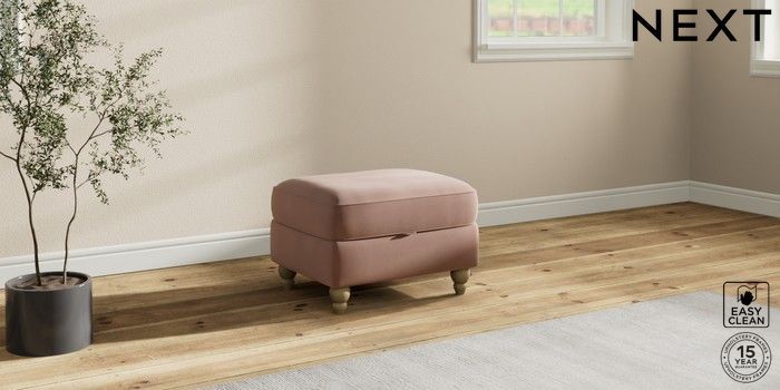 7.2.10 Ashford Storage Footstool Plush Velvet Easy Clean Mid Natural Low Turned - Light | Made Click here to use our website with more accessibility support, for example screen readers