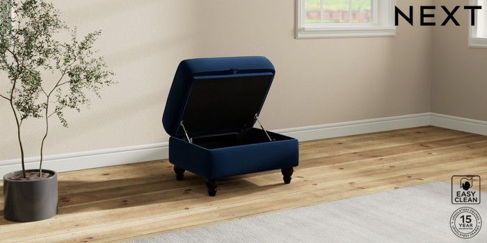 7.2.10 Ashford Storage Footstool Plush Velvet Easy Clean Navy Blue Low Turned - Dark | Made Click here to use our website with more accessibility support, for example screen readers