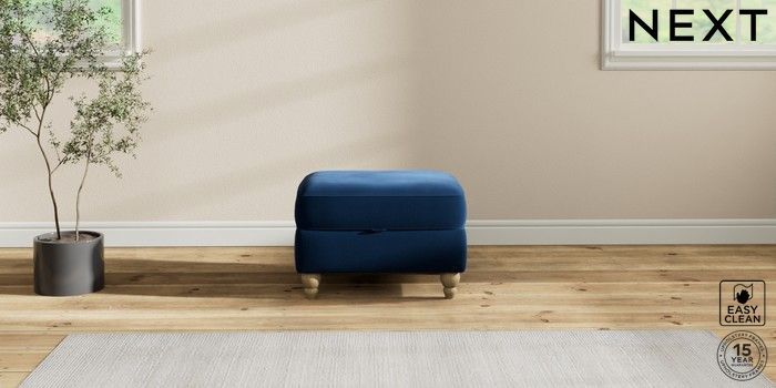 7.2.10 Ashford Storage Footstool Plush Velvet Easy Clean Navy Blue Low Turned - Light | Made Click here to use our website with more accessibility support, for example screen readers