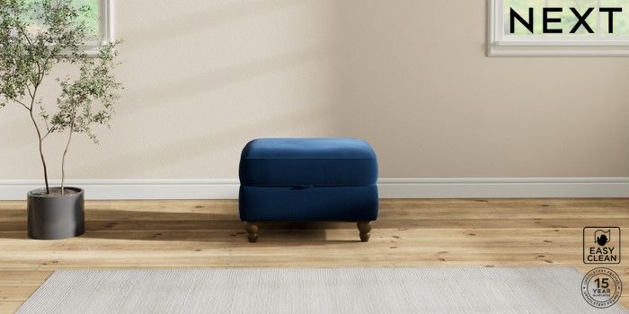7.2.10 Ashford Storage Footstool Plush Velvet Easy Clean Navy Blue Low Turned - Mid | Made Click here to use our website with more accessibility support, for example screen readers