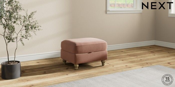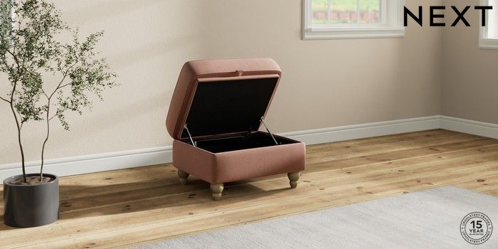 7.2.10 Ashford Storage Footstool Relaxed Linen Look Light Rust Brown Low Turned - Light | Made Click here to use our website with more accessibility support, for example screen readers