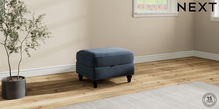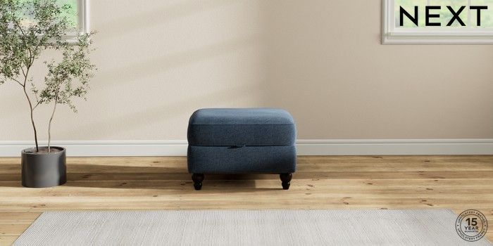 7.2.10 Ashford Storage Footstool Ripple Chenille Dark Blue Low Turned - Dark | Made Click here to use our website with more accessibility support, for example screen readers