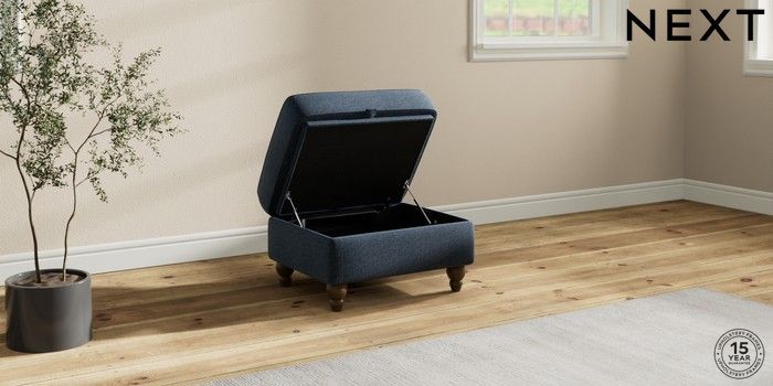 7.2.10 Ashford Storage Footstool Ripple Chenille Dark Blue Low Turned - Mid | Made Click here to use our website with more accessibility support, for example screen readers