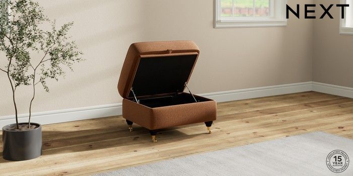 7.2.10 Ashford Storage Footstool Ripple Chenille Mid Rust Brown Castor - Dark | Made Click here to use our website with more accessibility support, for example screen readers