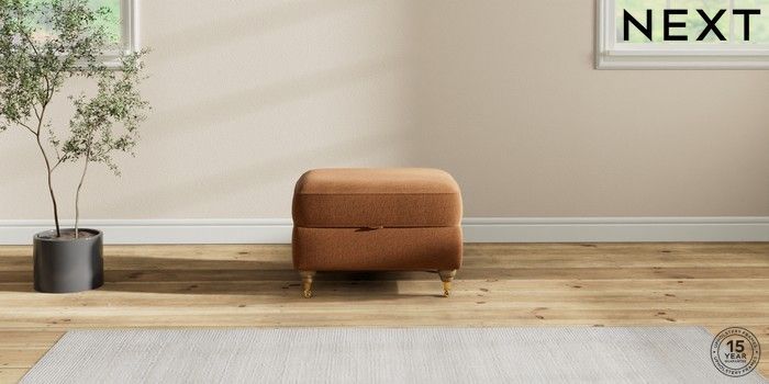 7.2.10 Ashford Storage Footstool Ripple Chenille Mid Rust Brown Castor - Light | Made Click here to use our website with more accessibility support, for example screen readers