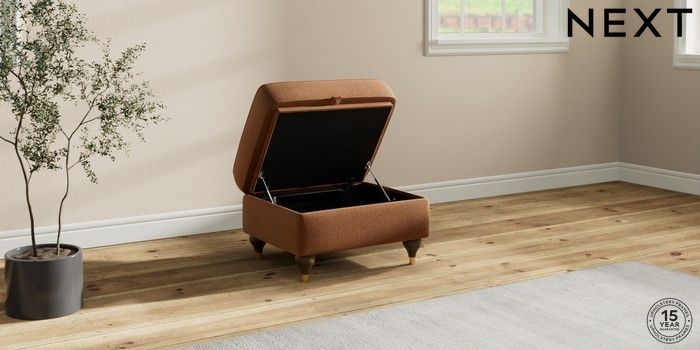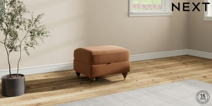 7.2.10 Ashford Storage Footstool Ripple Chenille Mid Rust Brown Modern Turned Metal Cap - Mid | Made Click here to use our website with more accessibility support, for example screen readers