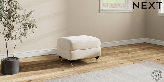 7.2.10 Ashford Storage Footstool Ripple Chenille Oyster Castor - Dark | Made Click here to use our website with more accessibility support, for example screen readers