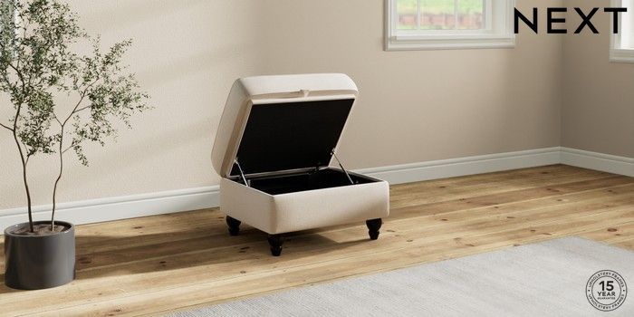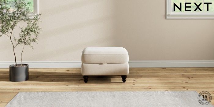 7.2.10 Ashford Storage Footstool Studio Chenille Oyster Low Turned - Dark | Made Click here to use our website with more accessibility support, for example screen readers