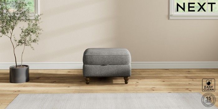 7.2.10 Ashford Storage Footstool Tweedy Blend Easy Clean Dark Grey Low Turned - Mid | Made Click here to use our website with more accessibility support, for example screen readers
