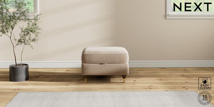 7.2.10 Ashford Storage Footstool Tweedy Blend Easy Clean Light Dove Natural Castor - Mid | Made Click here to use our website with more accessibility support, for example screen readers