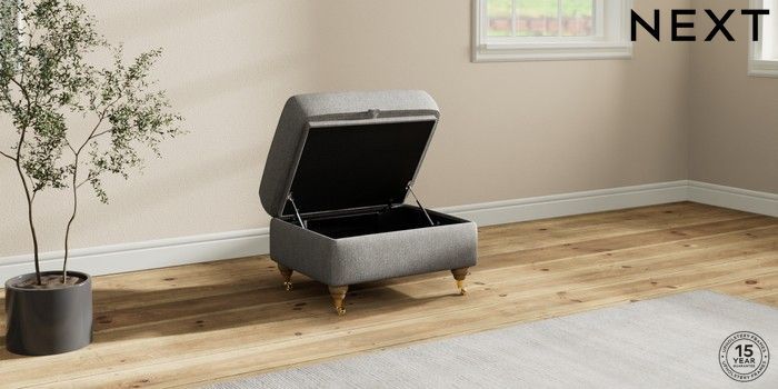 7.2.10 Ashford Storage Footstool Tweedy Chenille Mid Grey Castor - Light | Made Click here to use our website with more accessibility support, for example screen readers
