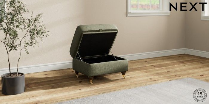 7.2.10 Ashford Storage Footstool Tweedy Chenille Mid Moss Green Castor - Mid | Made Click here to use our website with more accessibility support, for example screen readers