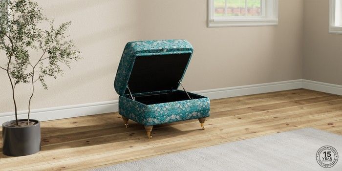 7.2.10 Ashford Storage Footstool WM Strawberry Thief by Clarke and Clarke Teal Castor - Light | Made Click here to use our website with more accessibility support, for example screen readers