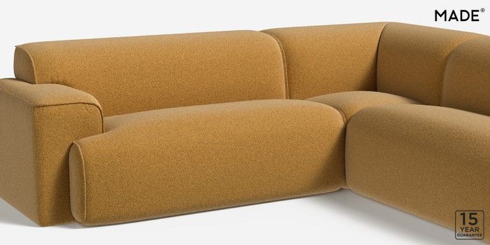 6.12.1 Avalon by Made Medium Corner Sofa - Universal Soft Touch Boucle Ochre Yellow Glide | Made Click here to use our website with more accessibility support, for example screen readers
