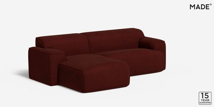 6.12.1 Avalon by Made Medium Sofa Chaise - Left Hand Matt Velvet Easy Clean Rust Red Glide | Made Click here to use our website with more accessibility support, for example screen readers