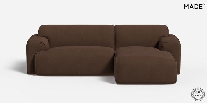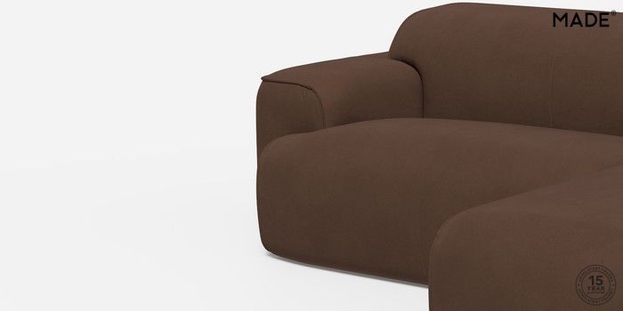 6.12.1 Avalon by Made Medium Sofa Chaise - Left Hand Matt Velvet Easy Clean Soft Brown Glide | Made Click here to use our website with more accessibility support, for example screen readers