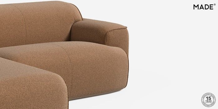6.12.1 Avalon by Made Medium Sofa Chaise - Left Hand Soft Touch Boucle Caramel Natural Glide | Made Click here to use our website with more accessibility support, for example screen readers