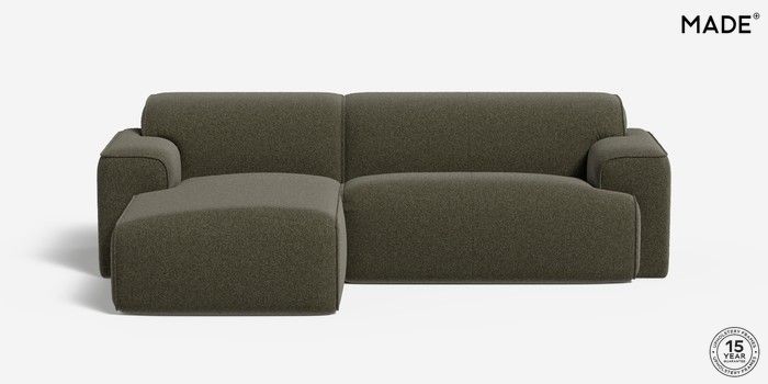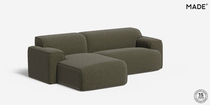 6.12.1 Avalon by Made Medium Sofa Chaise - Left Hand Soft Touch Boucle Forest Green Glide | Made Click here to use our website with more accessibility support, for example screen readers
