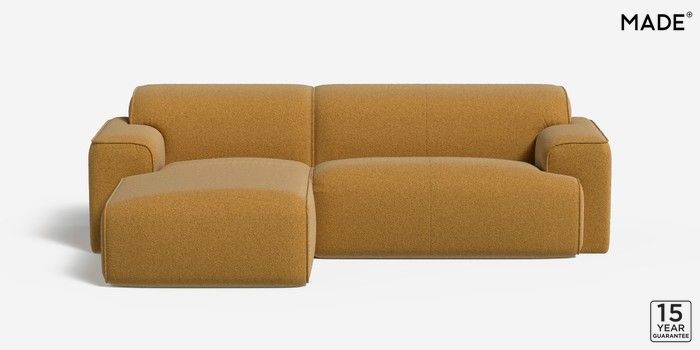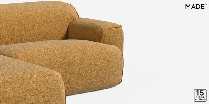 6.12.1 Avalon by Made Medium Sofa Chaise - Left Hand Soft Touch Boucle Ochre Yellow Glide | Made Click here to use our website with more accessibility support, for example screen readers