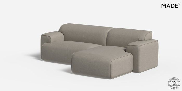 6.12.1 Avalon by Made Medium Sofa Chaise - Left Hand Textured Slub Weave Pumice Grey Glide | Made Click here to use our website with more accessibility support, for example screen readers