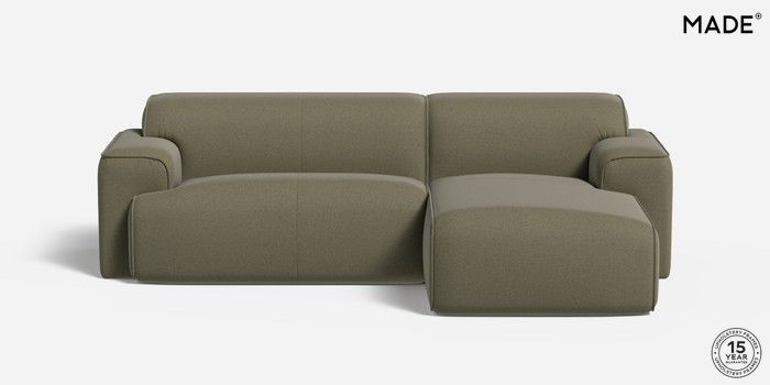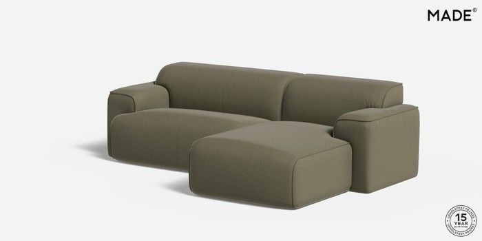 6.12.1 Avalon by Made Medium Sofa Chaise - Left Hand Textured Slub Weave Soft Olive Green Glide | Made Click here to use our website with more accessibility support, for example screen readers