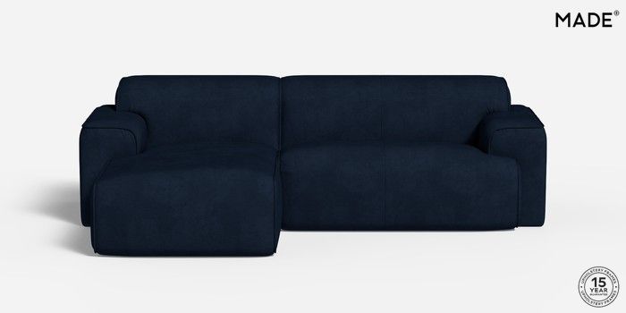 6.12.1 Avalon by Made Medium Sofa Chaise - Right Hand Matt Velvet Easy Clean Dark Navy Blue Glide | Made Click here to use our website with more accessibility support, for example screen readers