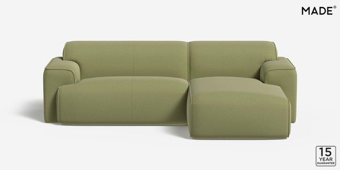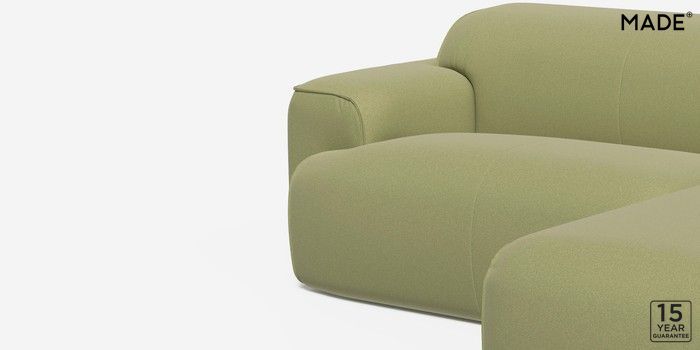 6.12.1 Avalon by Made Medium Sofa Chaise - Right Hand Soft Chenille Easy Clean Green Tea Glide | Made Click here to use our website with more accessibility support, for example screen readers