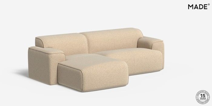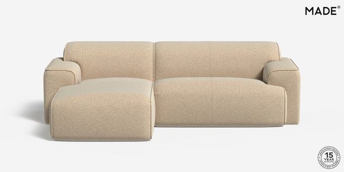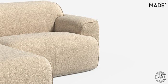 6.12.1 Avalon by Made Medium Sofa Chaise - Right Hand Soft Touch Boucle Natural Linen Glide | Made Click here to use our website with more accessibility support, for example screen readers