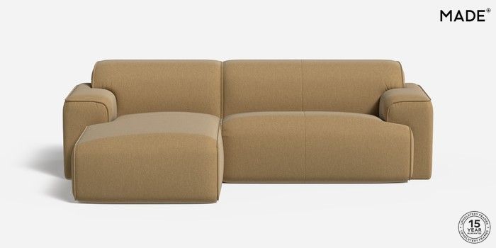6.12.1 Avalon by Made Medium Sofa Chaise - Right Hand Textured Slub Weave Caramel Natural Glide | Made Click here to use our website with more accessibility support, for example screen readers