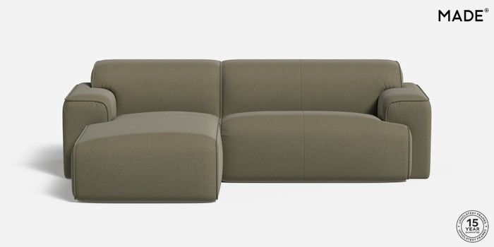 6.12.1 Avalon by Made Medium Sofa Chaise - Right Hand Textured Slub Weave Soft Olive Green Glide | Made Click here to use our website with more accessibility support, for example screen readers