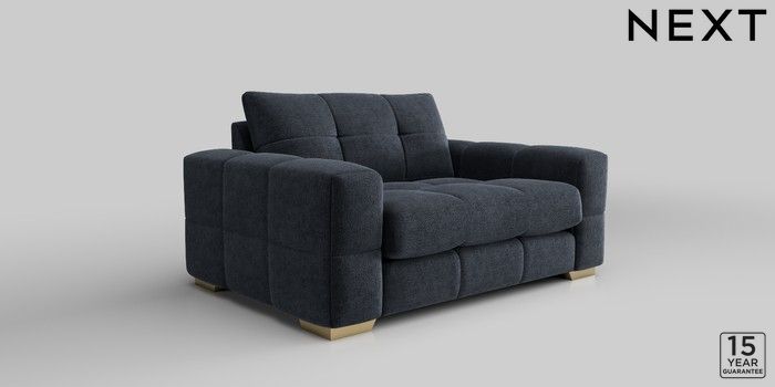 7.2.10 Brooke Deep Sit 2 Seater Small Sofa Boucle Chenille Dark Slate Blue Large Square Angle - Brushed Brass | Made Click here to use our website with more accessibility support, for example screen readers