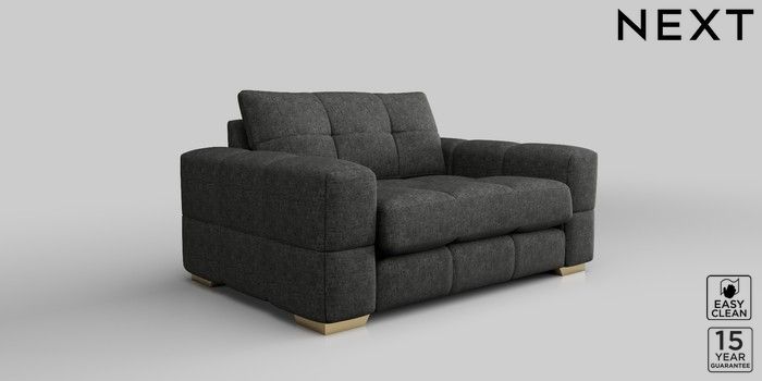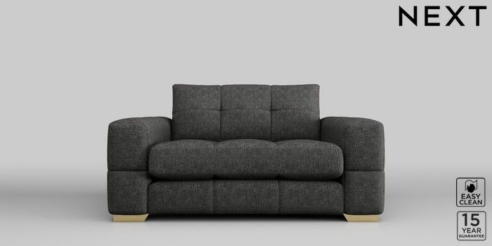 7.2.10 Brooke Deep Sit 2 Seater Small Sofa Boucle Weave Easy Clean Charcoal Grey Large Square Angle - Brushed Brass | Made Click here to use our website with more accessibility support, for example screen readers
