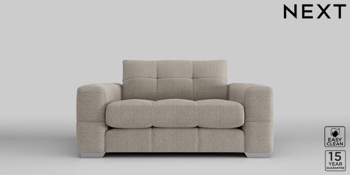 7.2.10 Brooke Deep Sit 2 Seater Small Sofa Chunky Boucle Easy Clean Dove Large Square Angle - Chrome Metal | Made Click here to use our website with more accessibility support, for example screen readers