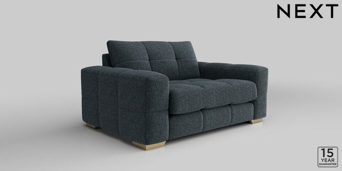 7.2.10 Brooke Deep Sit 2 Seater Small Sofa Chunky Chenille Dark Navy Blue Large Square Angle - Brushed Brass | Made Click here to use our website with more accessibility support, for example screen readers