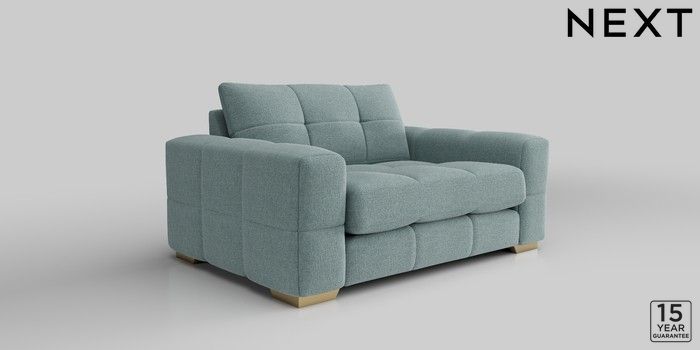7.2.10 Brooke Deep Sit 2 Seater Small Sofa Chunky Chenille Light Teal Green Large Square Angle - Brushed Brass | Made Click here to use our website with more accessibility support, for example screen readers