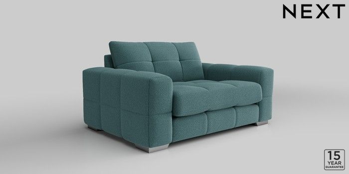 7.2.10 Brooke Deep Sit 2 Seater Small Sofa Chunky Chenille Mid Teal Green Large Square Angle - Chrome Metal | Made Click here to use our website with more accessibility support, for example screen readers