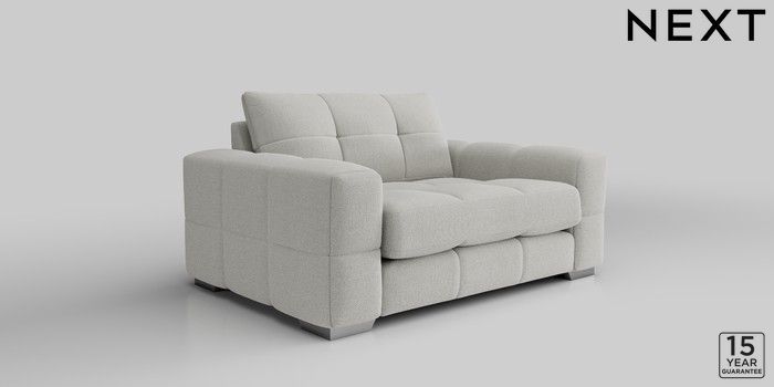 7.2.10 Brooke Deep Sit 2 Seater Small Sofa Chunky Texture Dove Large Square Angle - Chrome Metal | Made Click here to use our website with more accessibility support, for example screen readers