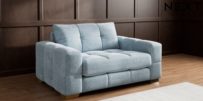 7.2.10 Brooke Deep Sit 2 Seater Small Sofa Plush Chenille Light Blue Large Square Angle - Brushed Brass | Made Click here to use our website with more accessibility support, for example screen readers
