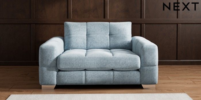 7.2.10 Brooke Deep Sit 2 Seater Small Sofa Plush Chenille Light Blue Large Square Angle - Chrome Metal | Made Click here to use our website with more accessibility support, for example screen readers