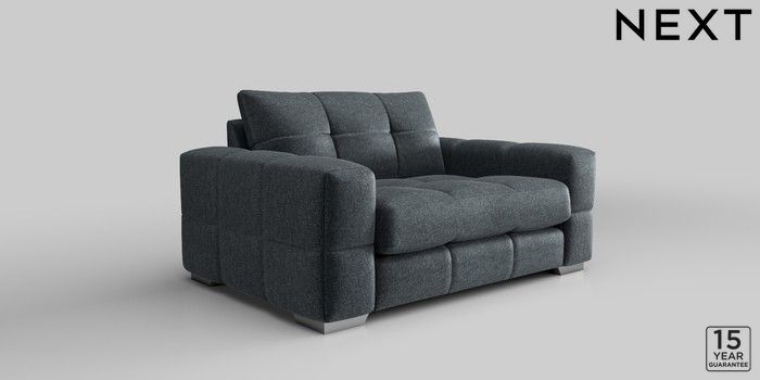 7.2.10 Brooke Deep Sit 2 Seater Small Sofa Plush Chenille Slate Blue Large Square Angle - Chrome Metal | Made Click here to use our website with more accessibility support, for example screen readers