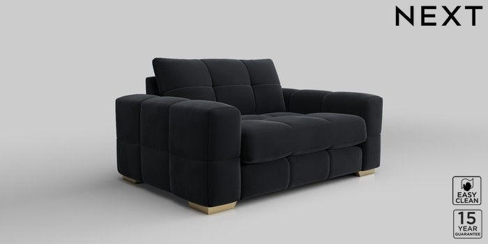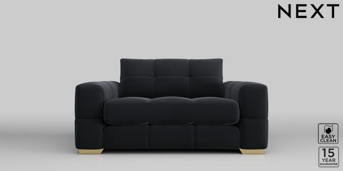 7.2.10 Brooke Deep Sit 2 Seater Small Sofa Plush Velvet Easy Clean Charcoal Grey Large Square Angle - Brushed Brass | Made Click here to use our website with more accessibility support, for example screen readers