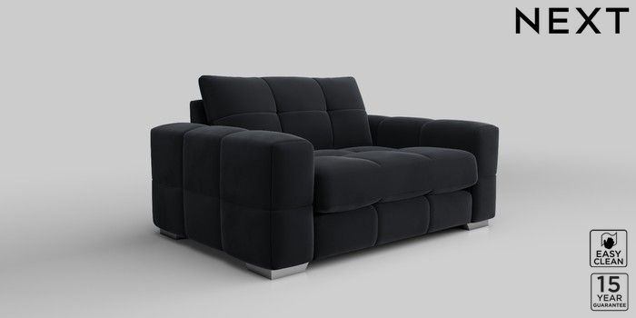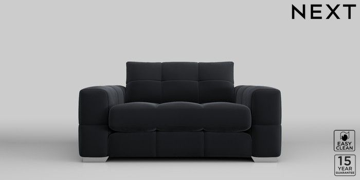 7.2.10 Brooke Deep Sit 2 Seater Small Sofa Plush Velvet Easy Clean Charcoal Grey Large Square Angle - Chrome Metal | Made Click here to use our website with more accessibility support, for example screen readers